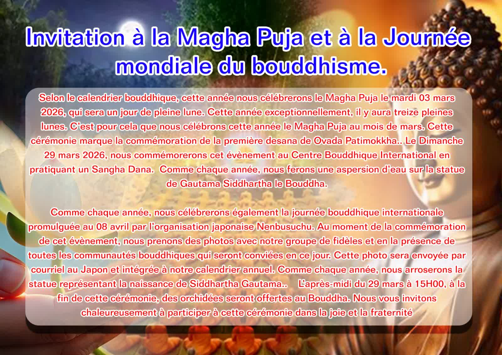 Nous la célébrerons le dimanche 10 Mai 2026 au Centre Bouddhique du Bourget et